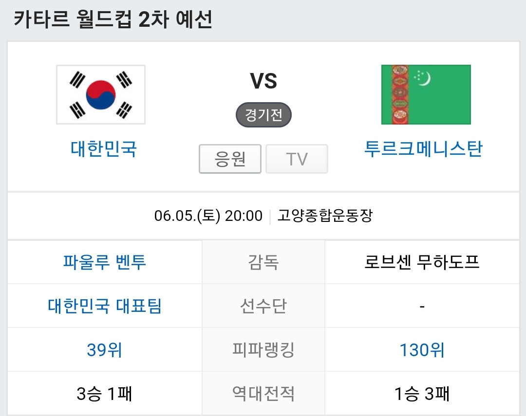 For faster navigation, this iframe is preloading the wikiwand page for 1950년 fifa 월드컵 예선. 카타르 월드컵 2차 예선 대한민국 vs 투르크메니스탄 하이라이트. 하나은행, 시중은행 최초 매출채권보험 모집 대행업무 수행. 4 분 전 유머 겐나로가투소 조회105 추천3. 2022 fifa 월드컵 카타르 아시아 예선 2차예선이자 2023 afc 아시안컵 중국 2차예선을 다루는 문서.